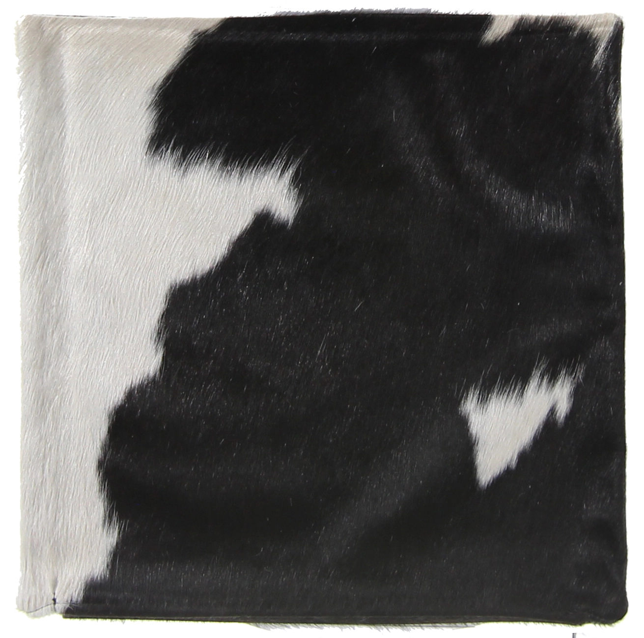 Aidosta lehmännahasta valmistettu tyyny. Saatavilla on ruskeavalkoisia, mustavalkoisia ja tilkkukuviollisia tyynyjä.