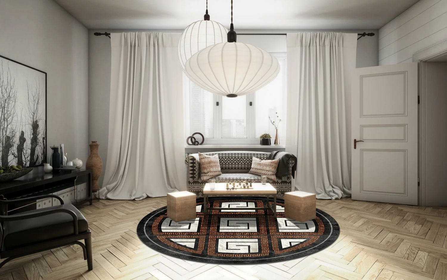 Pyöreät Matot – Milos (musta/valkoinen)