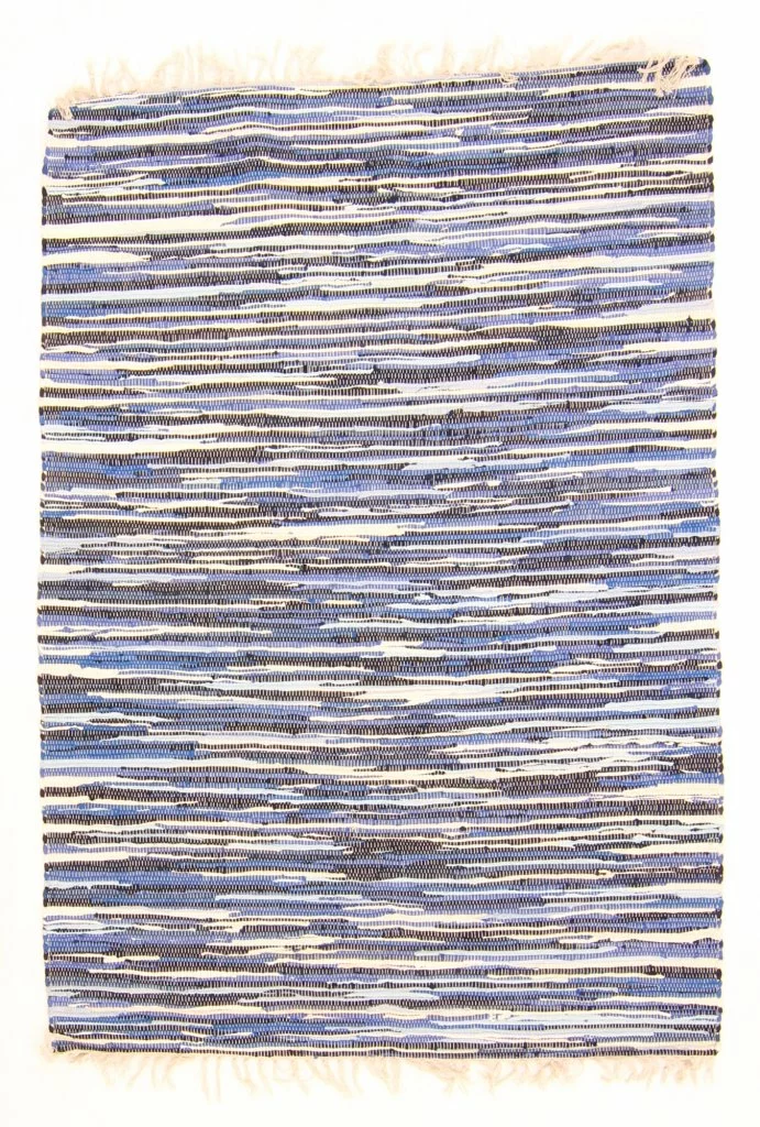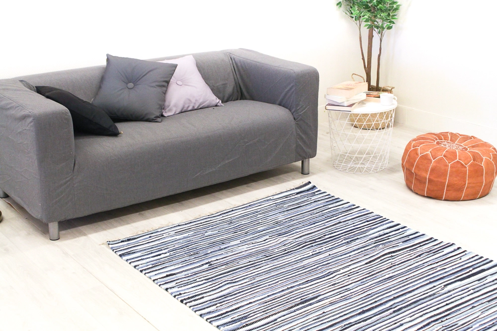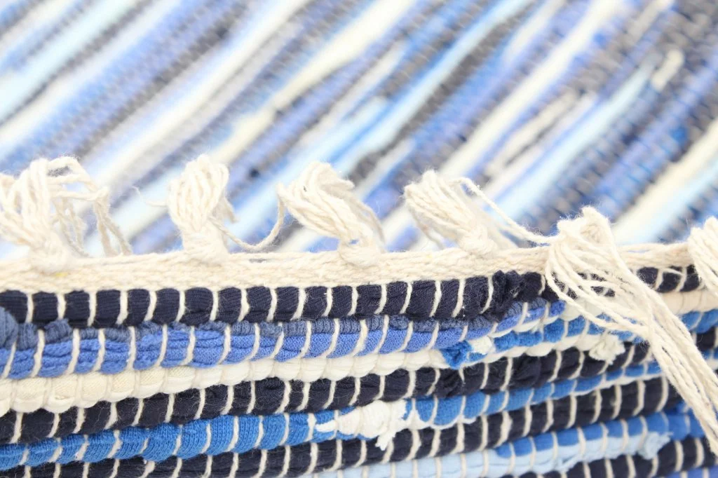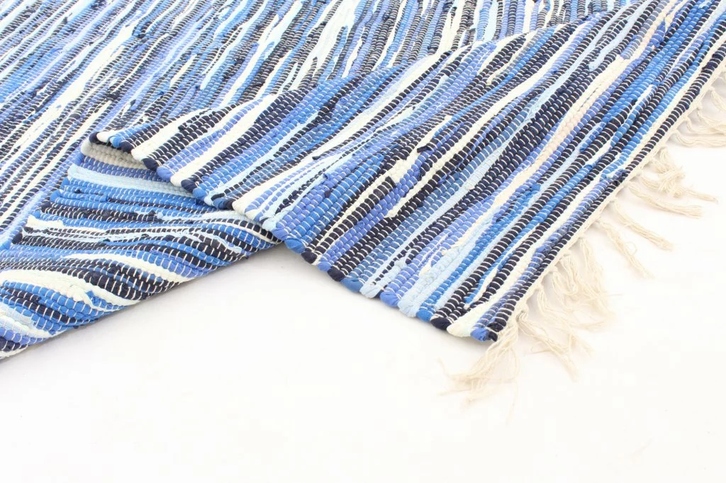 Käsin kudottu räsymatto 100 % puuvillaa.