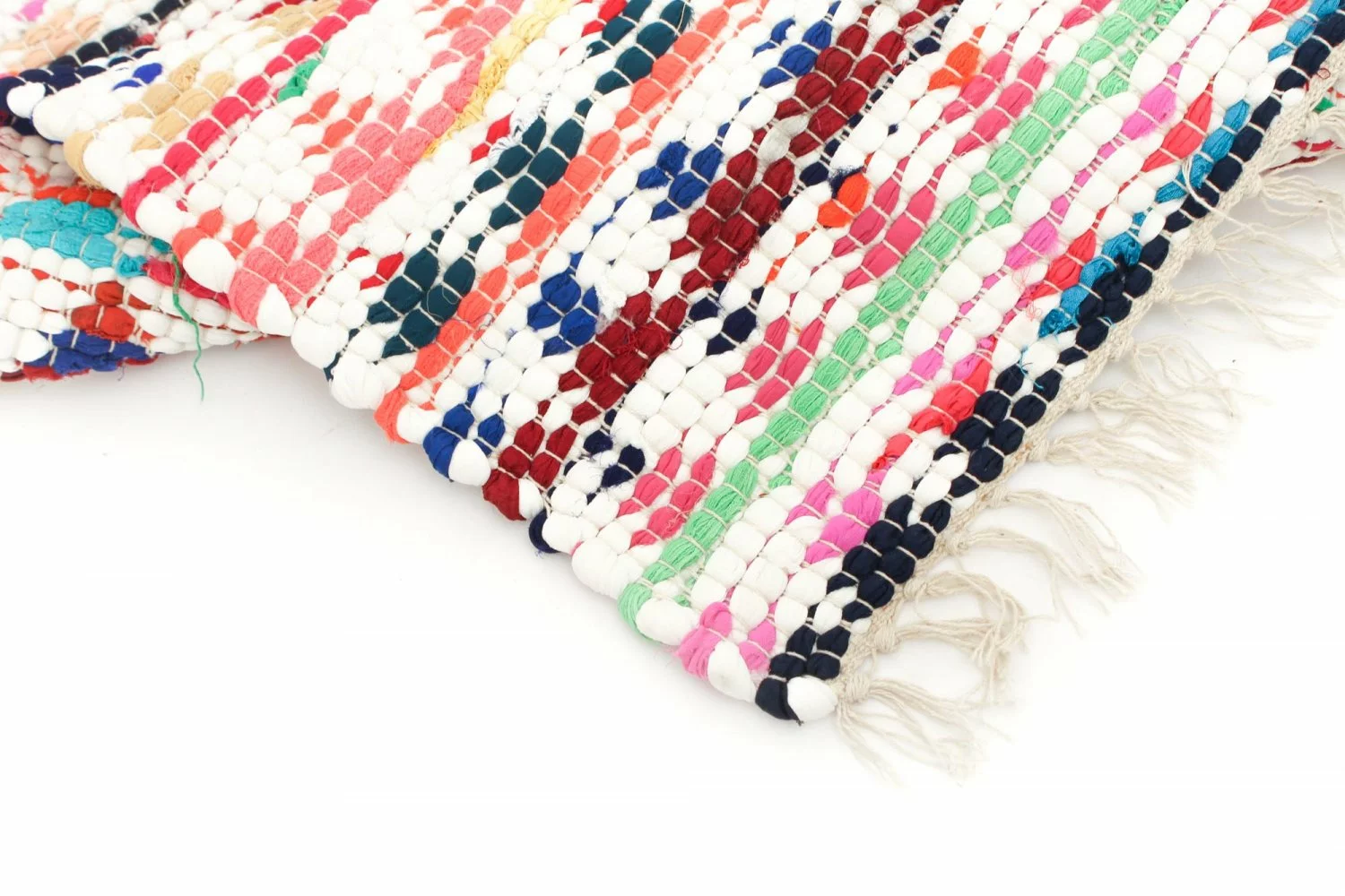 Käsin kudottu räsymatto puuvillaa/polyesteri.