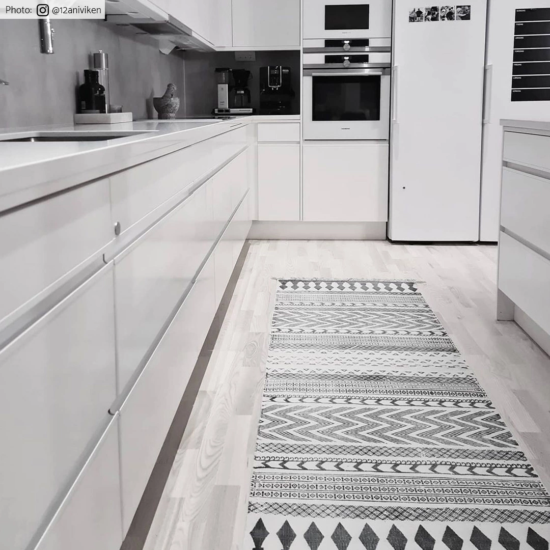 Puuvillamatto Marrakech on kivipesty matto mustan, valkoisen ja harmaan väreissä. Matto nostaa mieleen marokkolaisen mattokulttuurin berberilliset kuviot. Äärimmäisen kaunis matto, jonka kivipesu takaa antiikkisen hohdon.